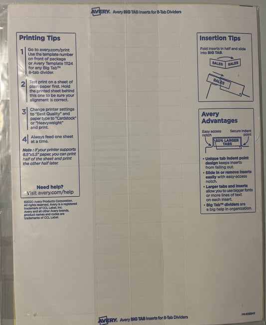 Avery Insertable Big Tab Dividers 8-Tab Letter 11112 Clear - 1 Pack