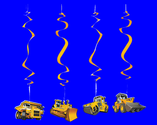 Construction Party Hanging Swirl Decorations - 12 ct